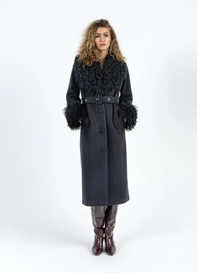 Detalles del producto: Corte holgado. Cuello y puños largos de piel. Cinturón con ojales plateados. Hebilla forrada de tela. Largo por debajo de las rodillas. La modelo mide 182 cm y lleva la talla S. Sus medidas de pecho son 82 cm, cintura 61 cm y caderas 93 cm.